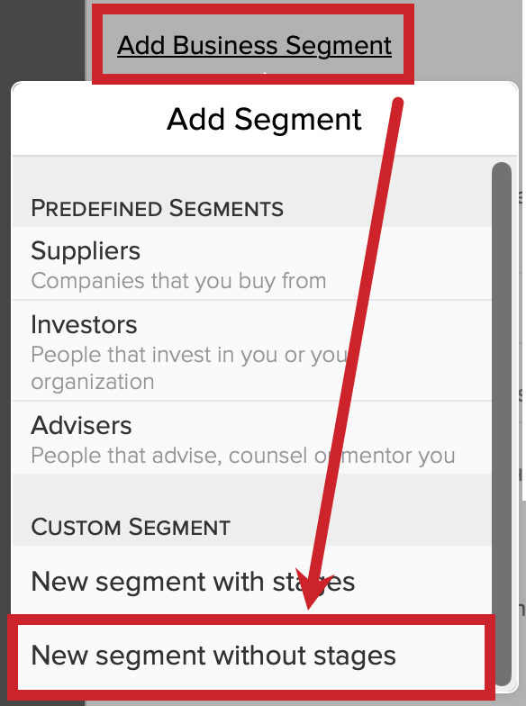 If you need to create a new type of relationship, scroll to the bottom of the list and tap on Add Business Segment or Add Personal Segment.