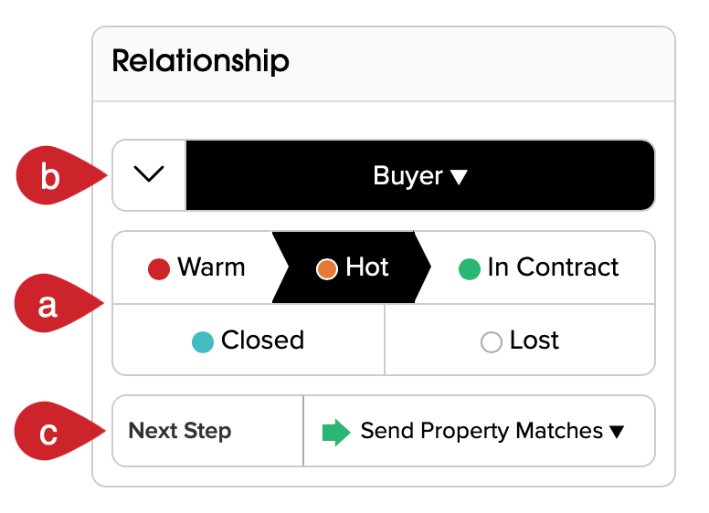 When you tap on a contact you’ll find a section within the profile called “Relationship”. Use the Relationship section to track the client's journey with you. Relationships can be organized by Stages, Segments, Next Steps, and Custom Fields.
