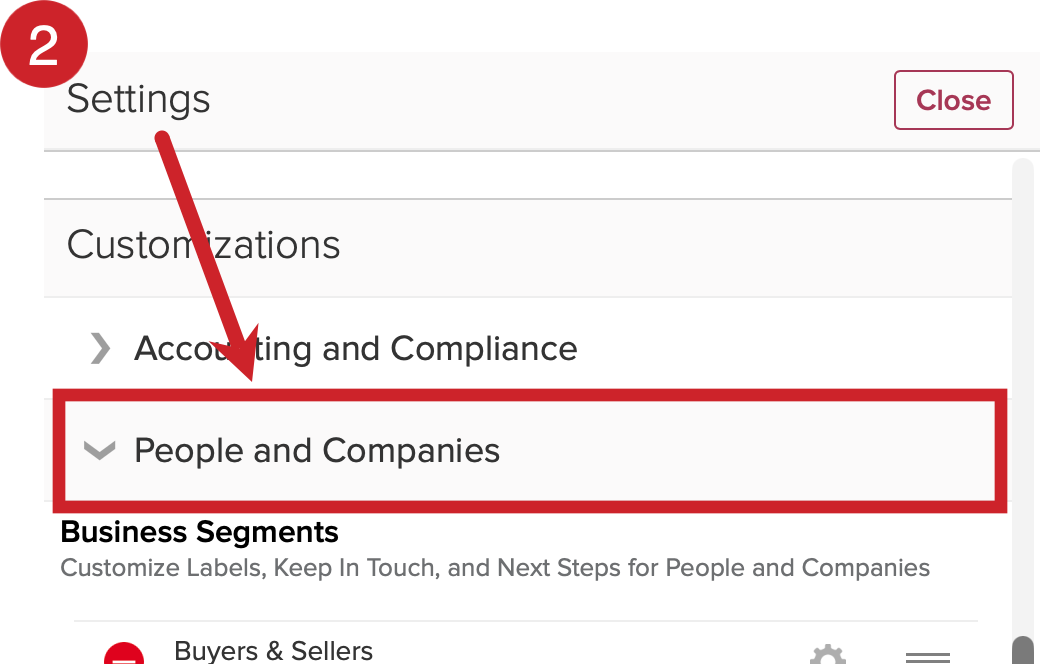 2.) Tap on People and Companies to expand the section.