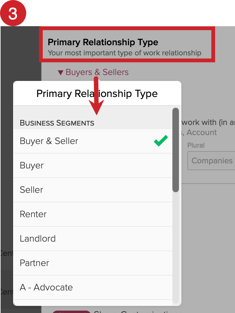 3.) Scroll down to the Primary Relationship Type section. Tap on the dropdown and then tap on a Segment to set your Primary Relationship Type.