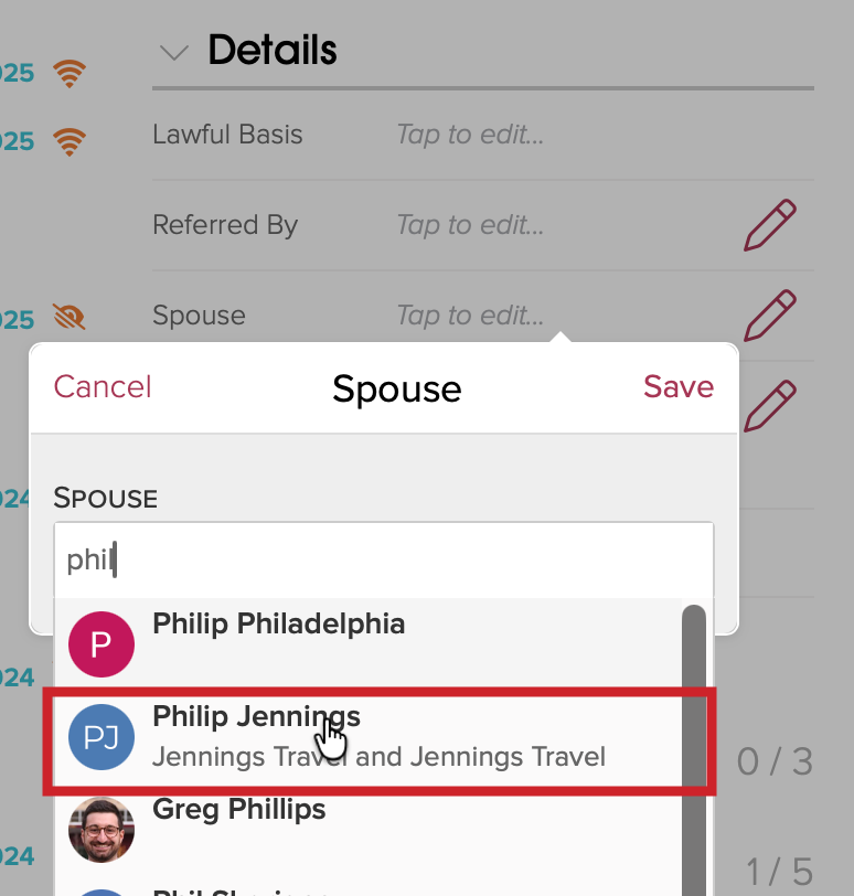 Reference Custom Fields are commonly used to link a spouse or children to a person, or you can use them to track the referrals you receive from a person or a company.