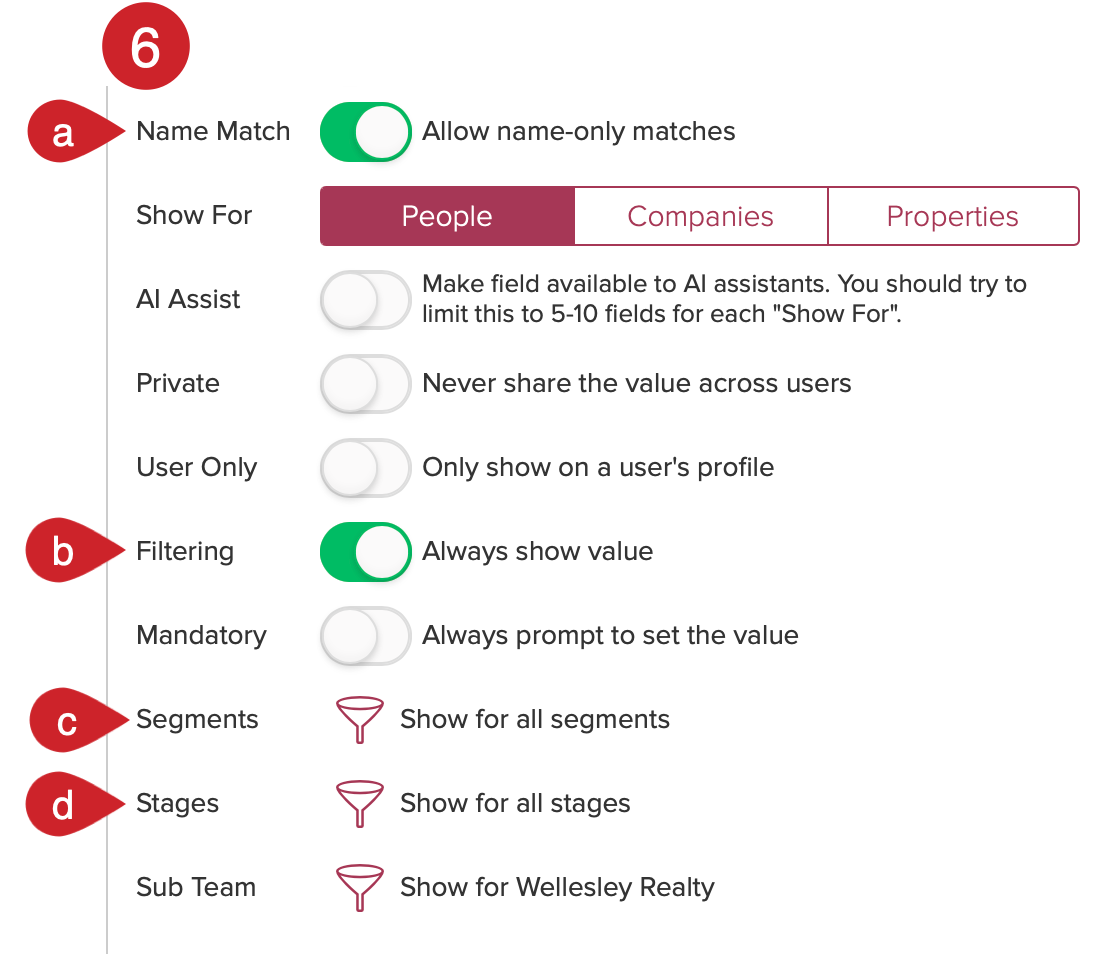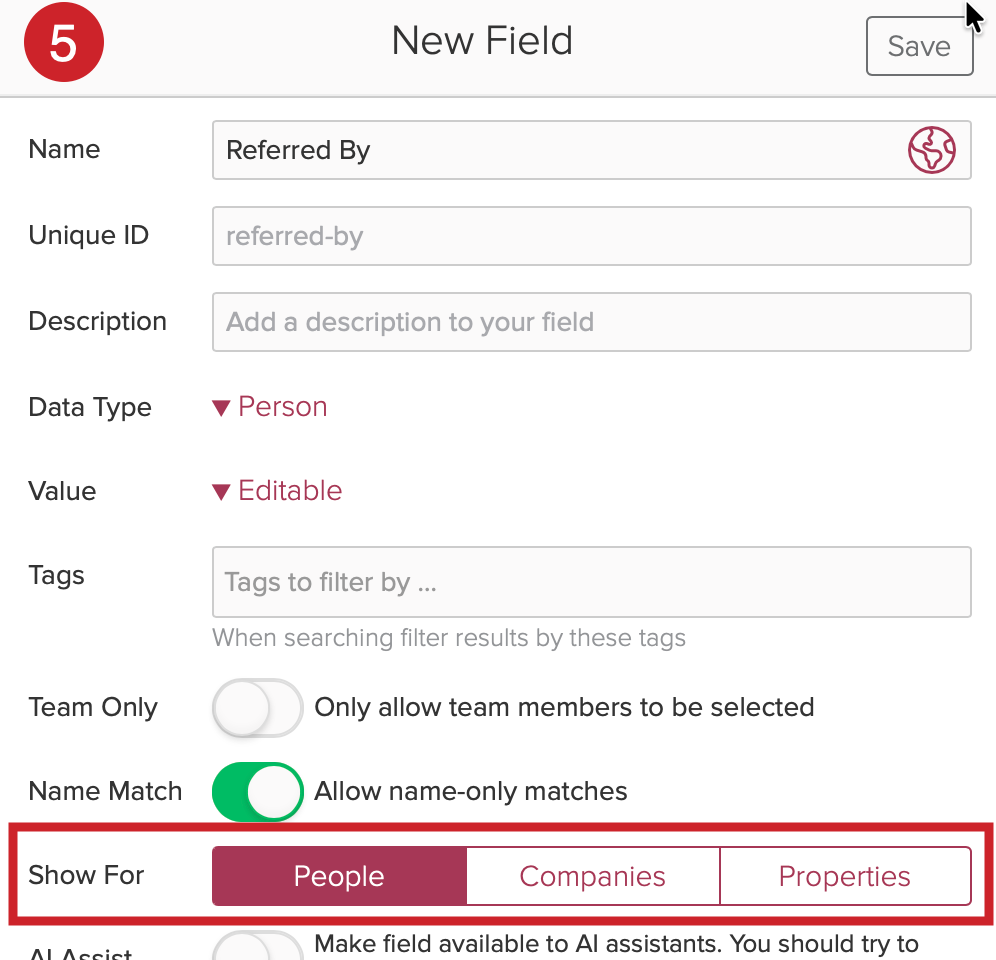 5.) Tap on "People", "Companies", or "Properties" to select where you would like your new field to appear. You can choose one or all of them.