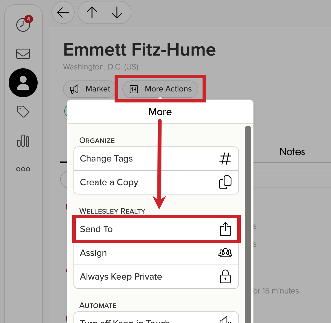 2.) Select the person (or your team) to share the contact.