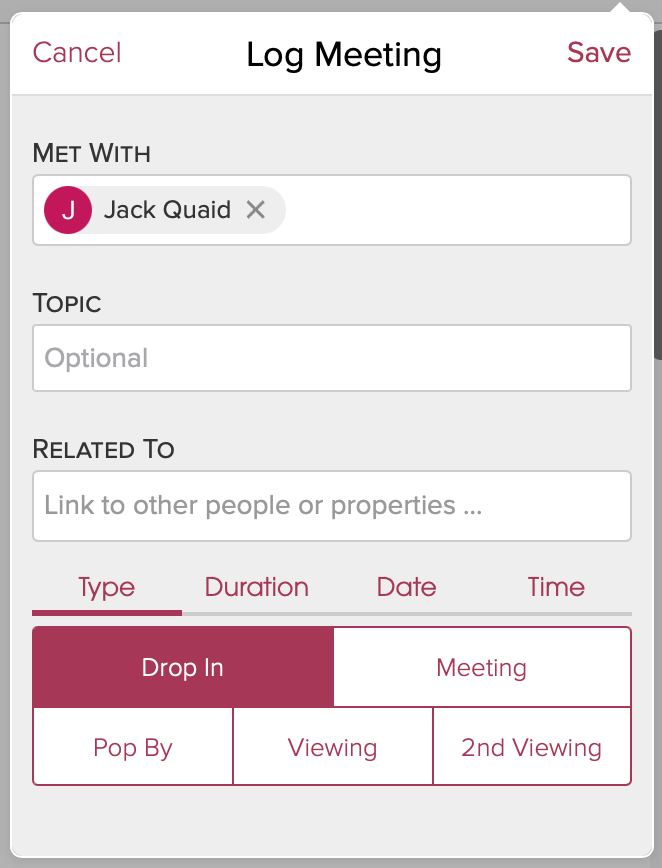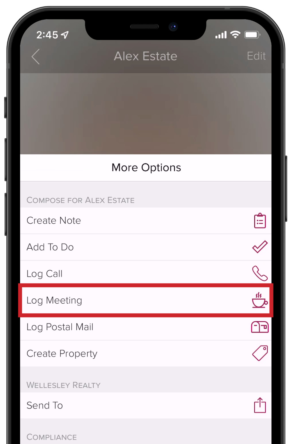 2.) Tap on Log Meeting.