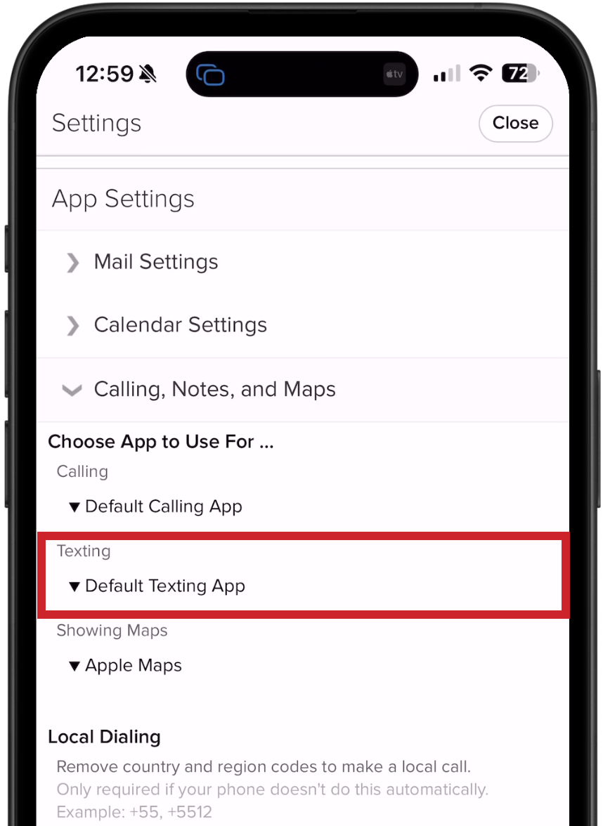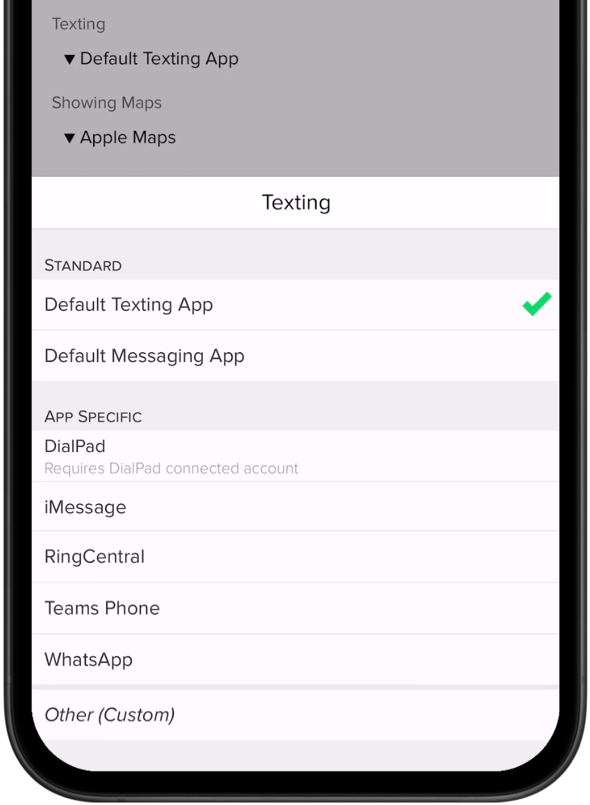 By default, Cloze will use your standard app for texting on your mobile phone and tablets. For example, on an iPhone when you tap on the texting icon and select a number, Cloze will default to the Messages app. Similarly, on an Android Cloze will also default to the Google Messages app.