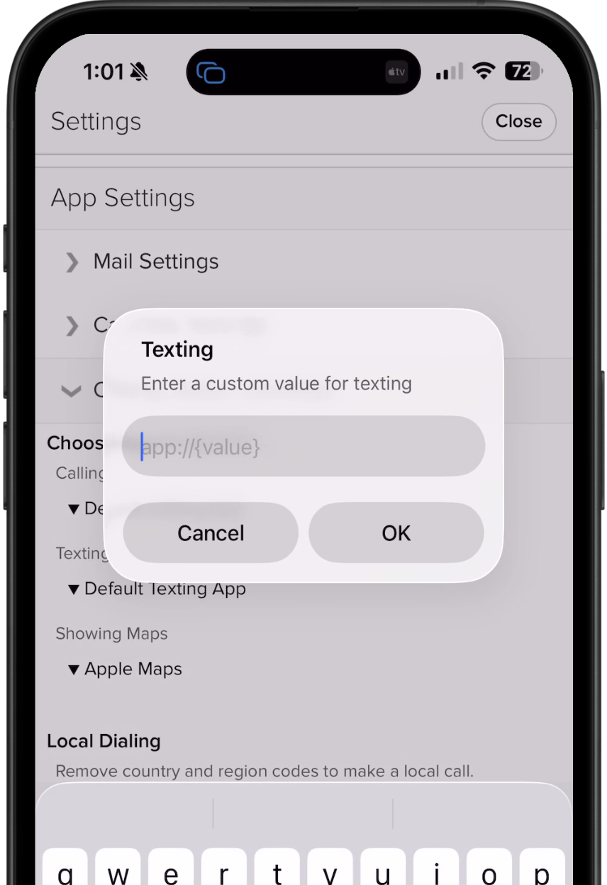 If you do not see your provider listed you can tap on Other and enter the URL Scheme / deep link. If you have any questions, please reach out to support@cloze.com. We're happy to assist.