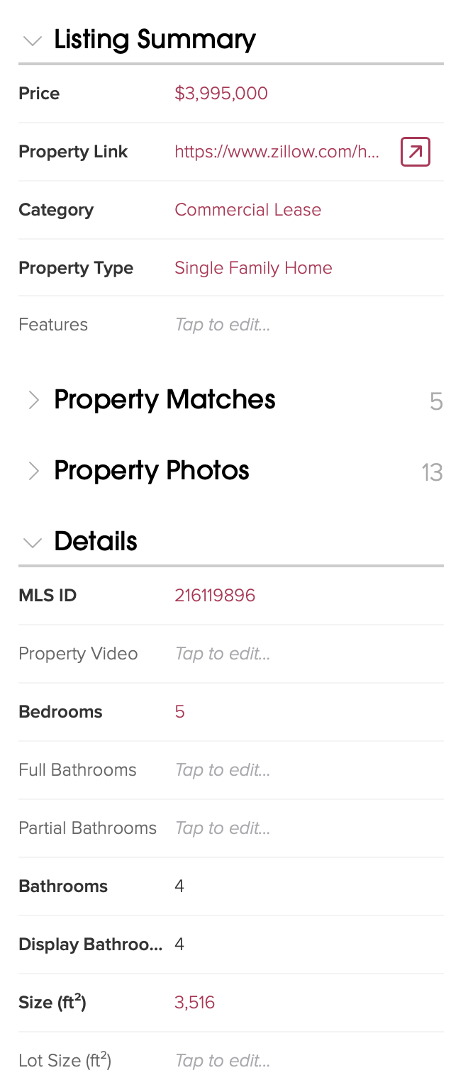 You can also easily view the same listing or transaction in dotloop by tapping on the dotloop link under App Links.