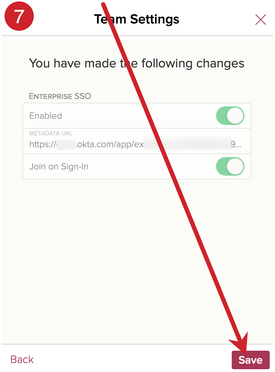 7.) Tap on the Save button to enable SSO.