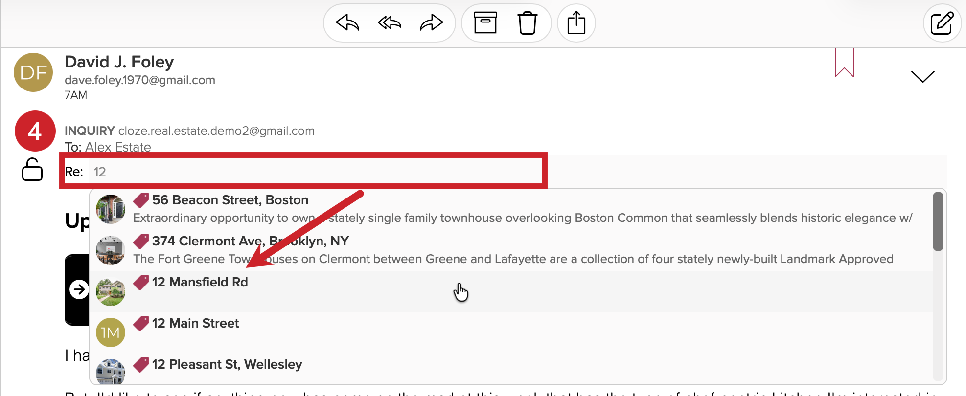 - Add the property address (or deal/project name) by typing it into the Re: line.