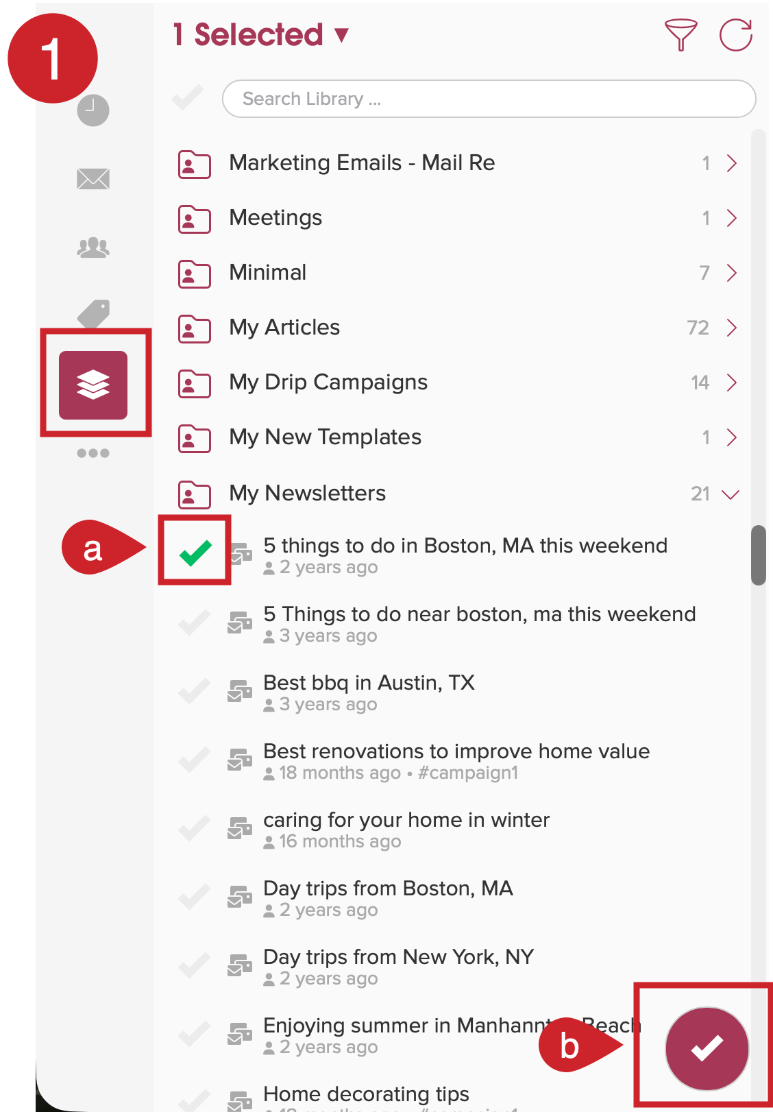 - The template will be added to the Template Library. You can search for the template name using the search bar (a) or you can tap on "Recent" (b).