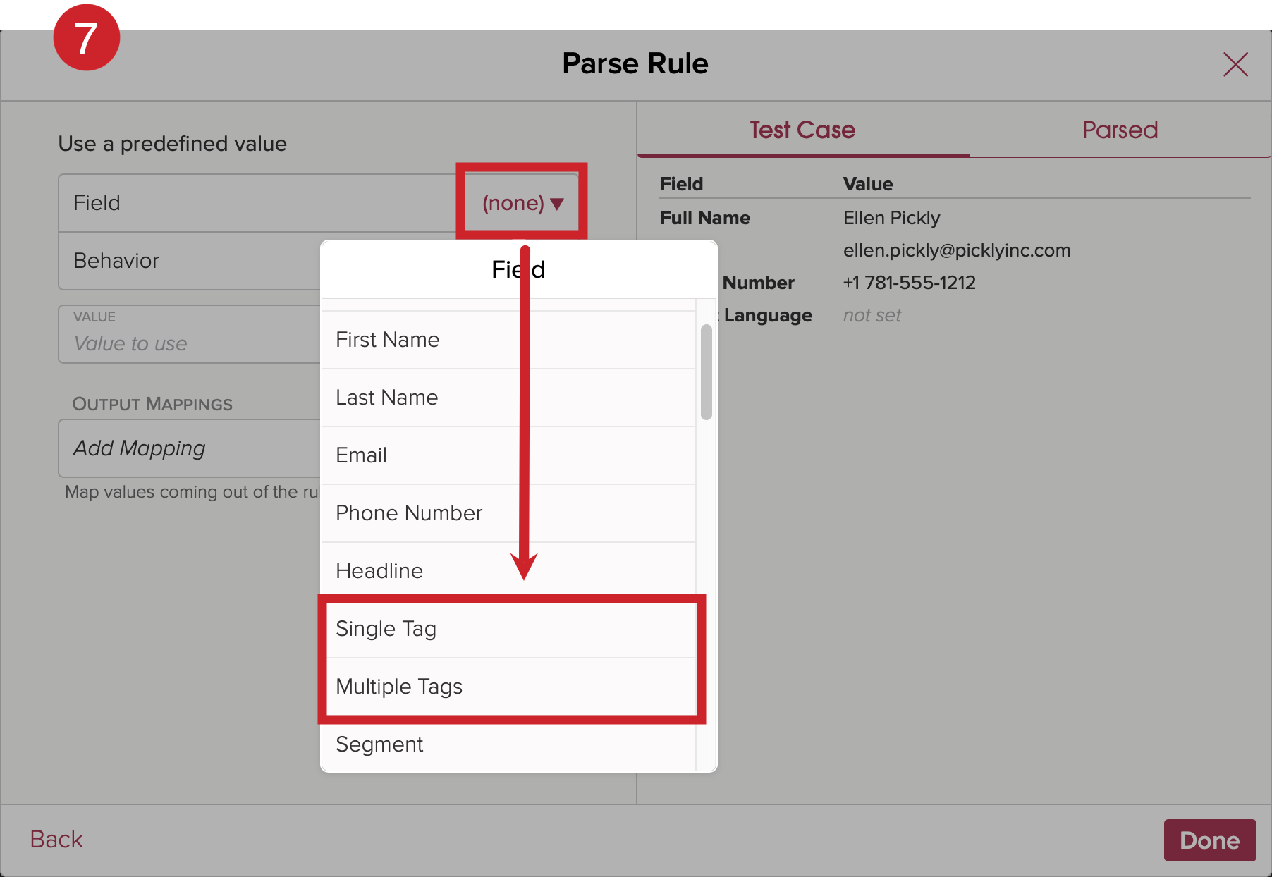 - Under Field, tap on the drop down menu and select Single Tag or Multiple Tags. (For this example we are choosing Single Tag).