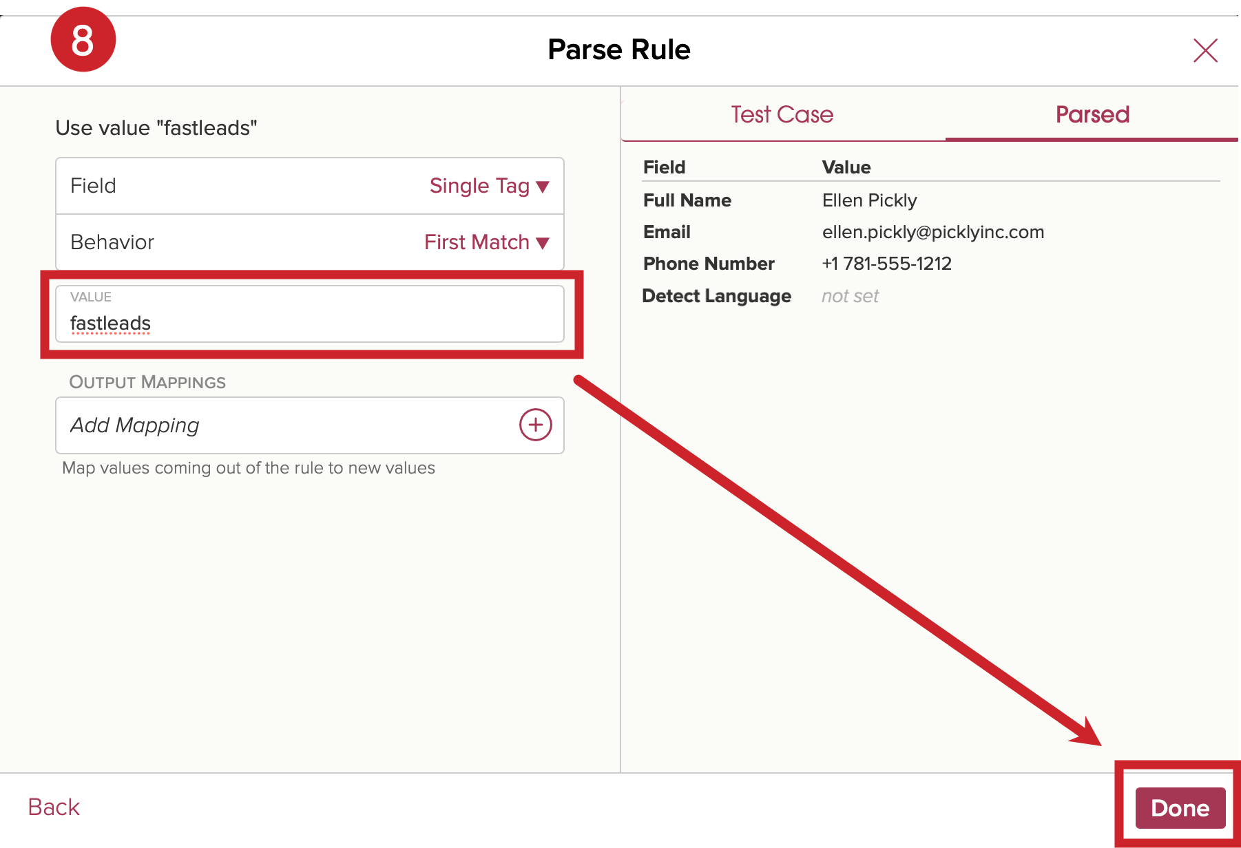 - You will see the rule has been added. If you tap on Parsed (right side of the rules), you will also see the rule with the tag. Tap on Done.