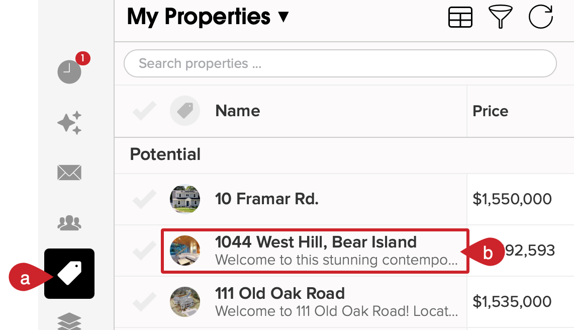 - Your listing: You will see your listing in the Property field (option search and replace if you want to switch listings).