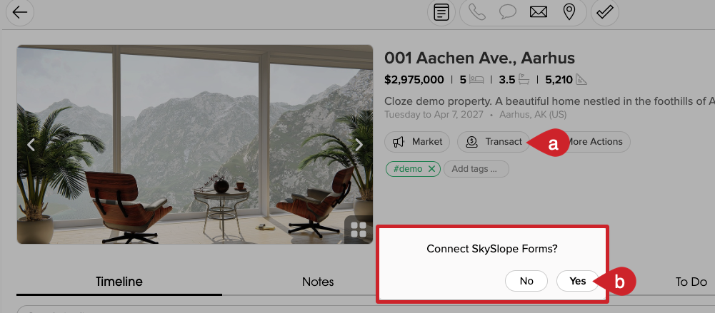SkySlope Forms can be connected in the Connected Accounts section of Settings, or your brokerage may centrally configure to prompt you to connect SkySlope Forms when you tap on Transact.