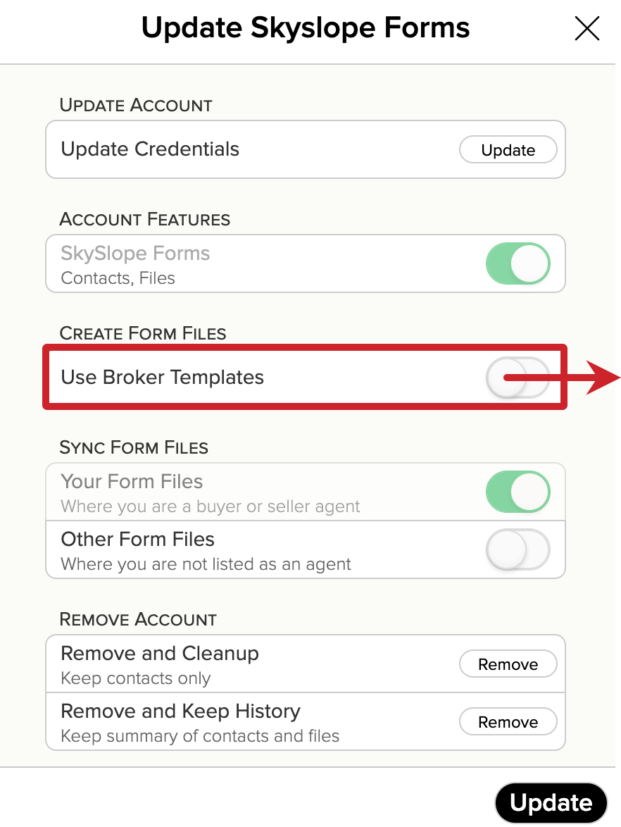 Note: If your brokerage wants everyone to use brokerage templates, an admin can enforce this at the team level using SkySlope Forms Broker Templates.