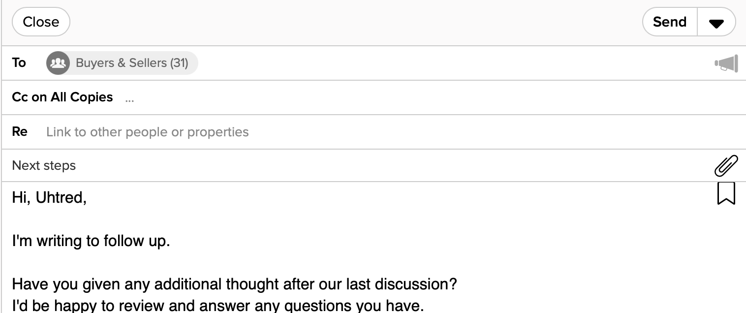 With Cloze, you can send a personalized email to multiple contacts at once using the Mail Merge feature. Mail merge allows you to communicate with many people at the same time while still maintaining the one-to-one, personal feel of each relationship.